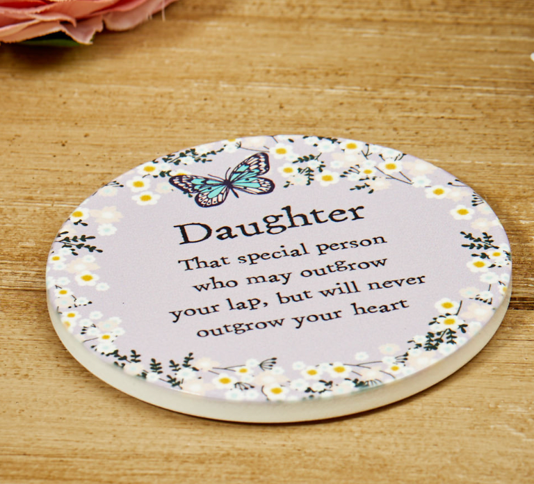 "Daughter, that special person who you may outgrow your lap, but will never outgrow your heart".