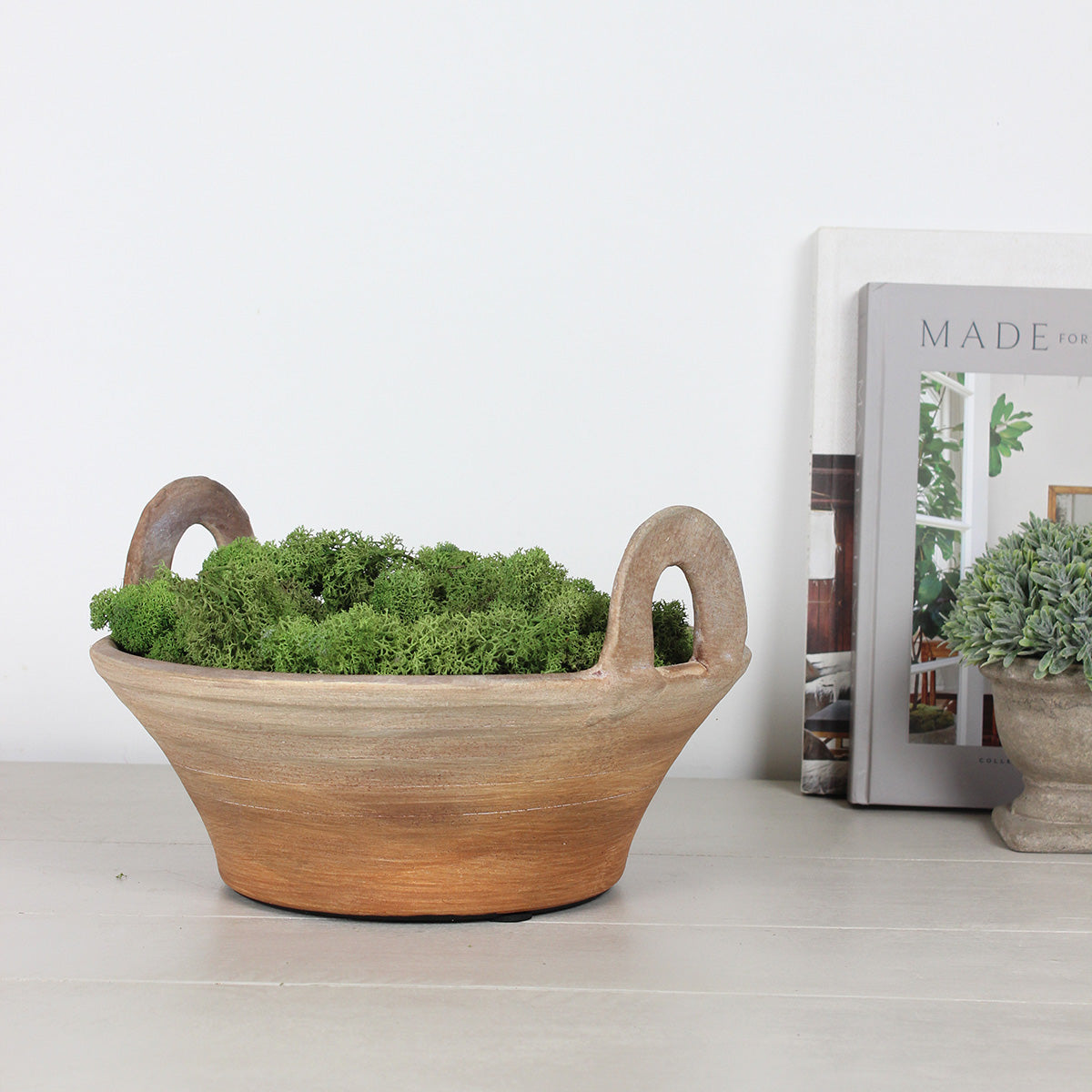 This gorgeous bowl will look simply stunning as the centrepiece to your kitchen table. Handcrafted from terracotta, this bowl features a wide mouth with two unusual vertical handles. To look gorgeous with large artificial fruit for a Mediterranean accent to your home.