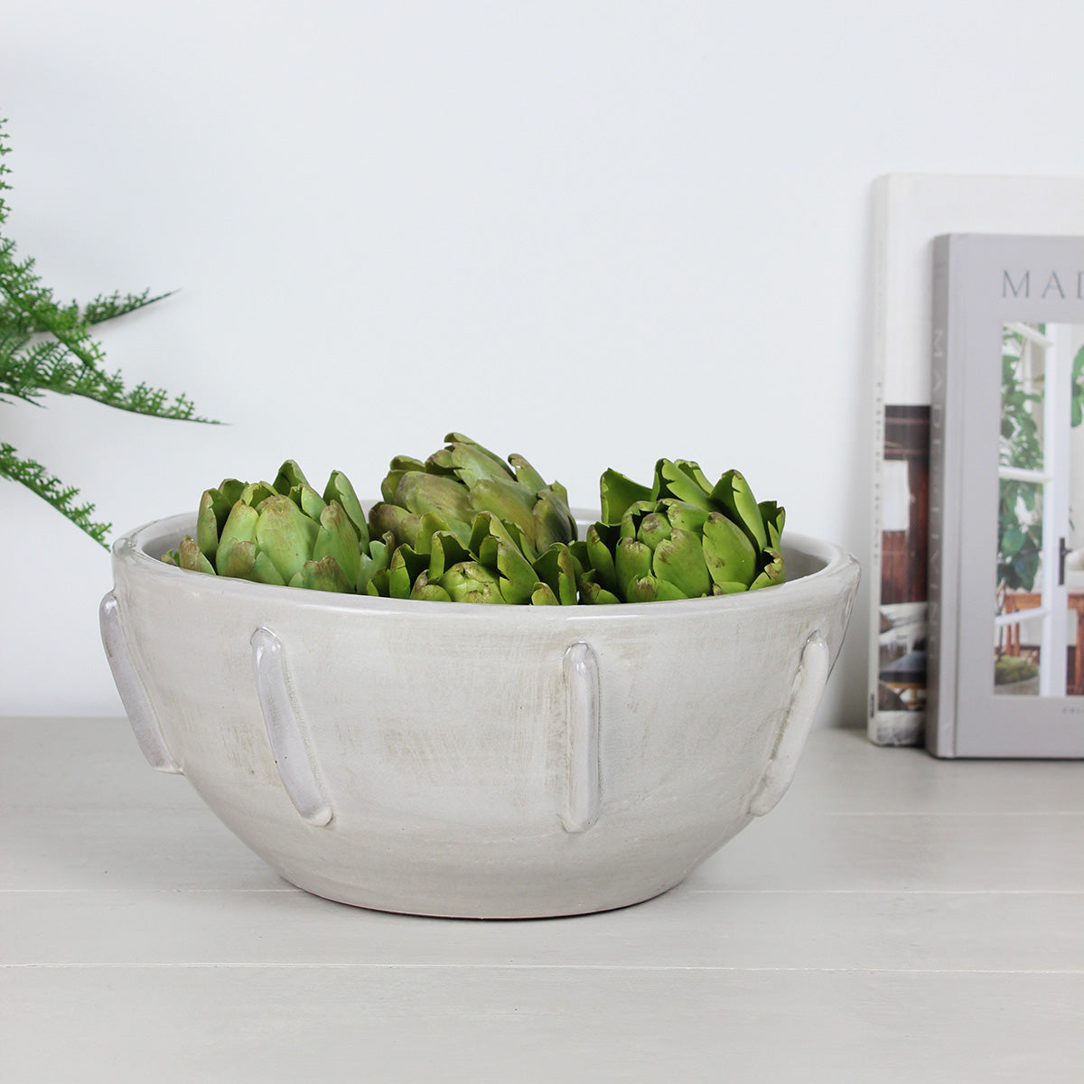 Add the finishing touches to your home with this distressed ceramic bowl. Featuring a wonderful nude tone this bowl will suit almost any interior design. Check out our artificial fruit or decorative balls for the perfect display.