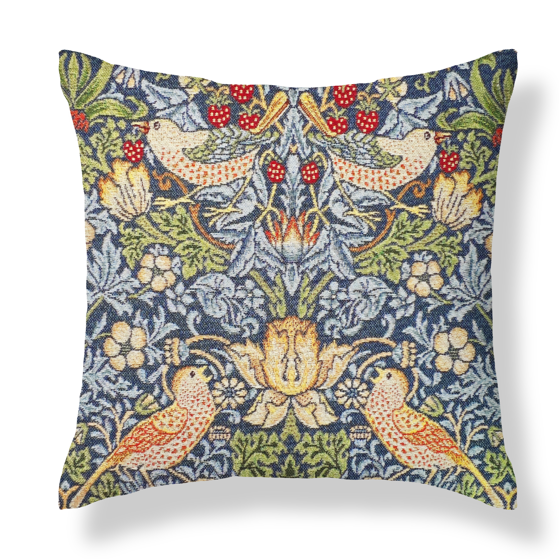 William Morris Strawberry Thief Tapestry Blue Cushion